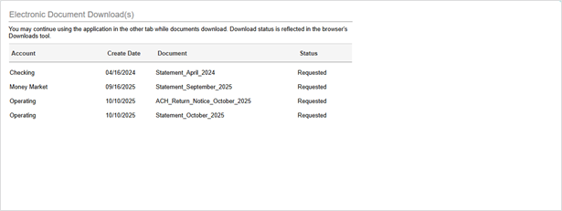 - Once Download has been selected, a new tab will appear and display the status of the download. You can then access your statement via your browser.